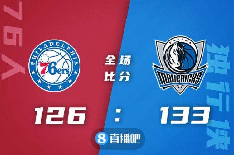 比赛开始,双方大打对攻,比分咬得很紧。哈登得分助攻一肩挑,恩比德强攻内线频频得手,东契奇和欧文里突外投帮助独行侠取得微弱优势,半场战罢76人67-71落后4分。易边再战,欧文独得9分引领球队轰出20-4的进攻高潮一举将分差拉开到20分,恩比德连投带罚拿分苦苦支撑,独行侠外线开火连中4记三分将分差拉开到25分,末节76人替补奋力反击轰出15-0迅速缩小分差,东契奇欧文联手拿分稳住局势,76人苦苦追赶无果,最终,独行侠133-126力克76人,主场过关。