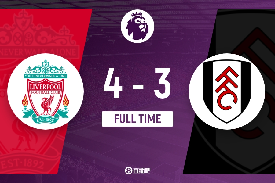 下半场伤停补时7分钟,全场比赛结束,最终利物浦4-3富勒姆。