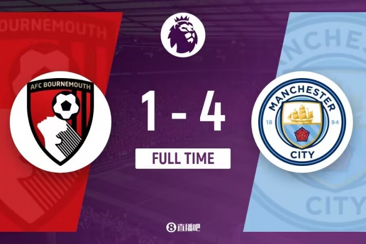 第82分钟,泽穆拉禁区左侧倒三角回敲,莱尔马得球顺势抽射入网,伯恩茅斯1-4曼城!↓