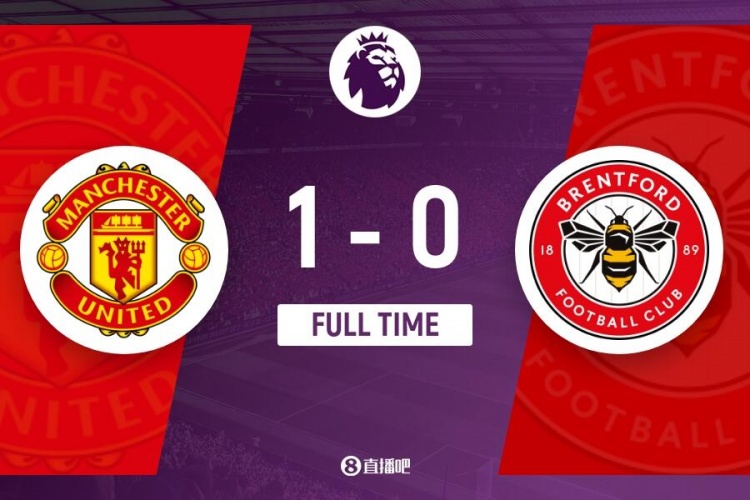 下半场伤停补时4分钟,全场比赛结束,最终曼联1-0布伦特福德。