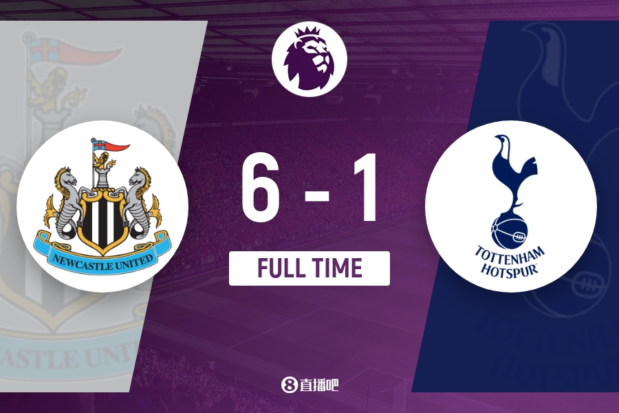 全场比赛结束,纽卡6-1击败热刺。