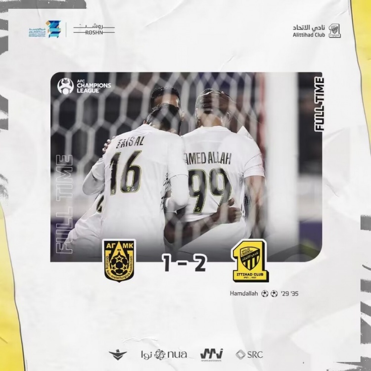 吉达联合替补:88-默梅什、4-奥马尔-豪萨维、70-哈伦-卡马拉、52-塔拉-哈吉
