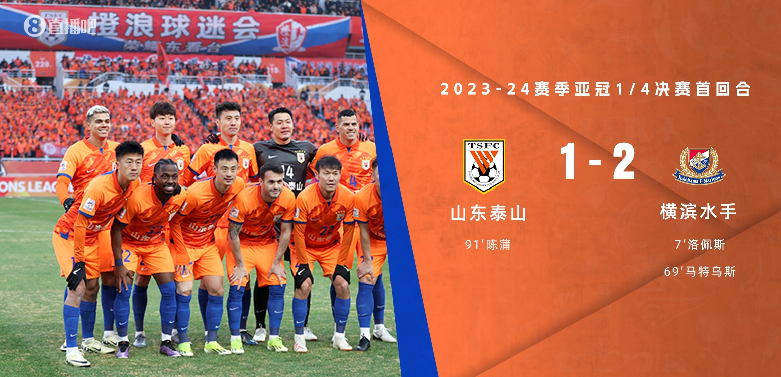 3月6日讯 北京时间3月6日18:00,亚冠1/4决赛首回合,山东泰山主场迎战横滨水手。上半场比赛,洛佩斯禁区内抽射破门;下半场比赛,马特乌斯扩大比分,最后时刻陈蒲追回一分。全场比赛结束,山东泰山1-2横滨水手,双方次回合比赛将在3月13日进行。