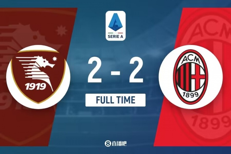 全场比赛结束,最终AC米兰2-2萨勒尼塔纳。