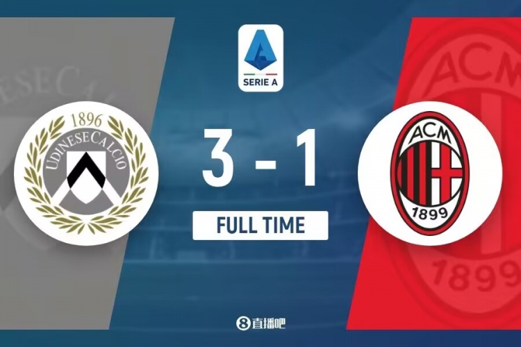 下半场伤停补时7分钟,全场比赛结束,最终AC米兰1-3乌迪内斯。