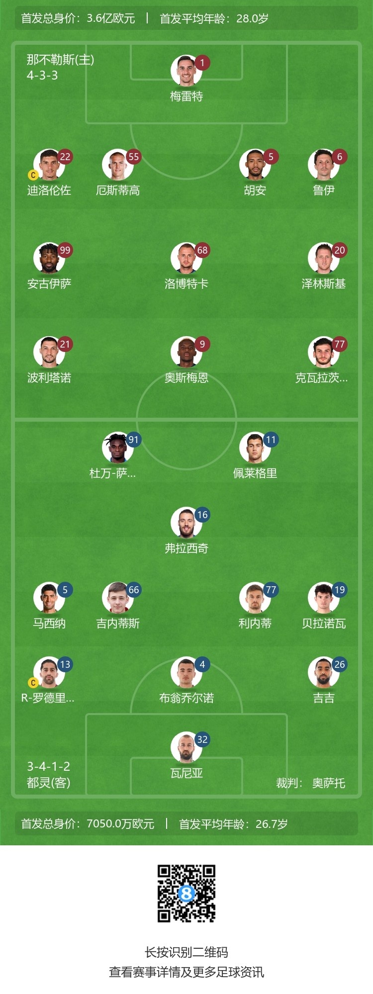 意甲-那不勒斯1-1都灵5轮不败 K77破门萨纳布里亚倒钩扳平