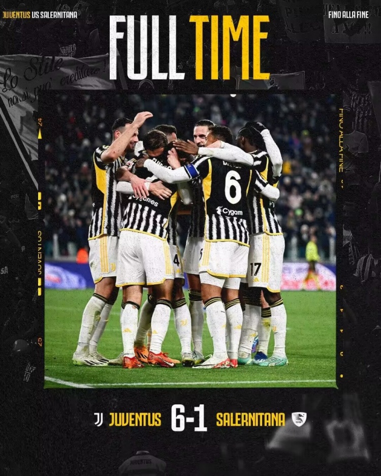1月5日讯 北京时间1月5日凌晨4点整,2023-24赛季意大利杯第3轮在都灵安联竞技场展开角逐,尤文图斯坐镇主场迎战萨勒尼塔纳。上半场加蒂乌龙助攻送礼,米雷蒂扳平,坎比亚索传射反超,下半场鲁加尼扩大比分,伊尔迪兹一条龙破门&造乌龙,维阿世界波。最终尤文主场6-1逆转萨勒尼塔纳晋级8强,斑马军团各赛事14场不败,下轮意杯将对阵弗洛西诺内。