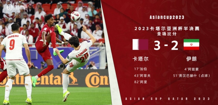 2月8日讯 北京时间2月7日23:00,亚洲杯半决赛,卡塔尔对阵伊朗。上半场比赛,阿兹蒙勾射破门首开纪录,加伯抽射造折射扳平比分,阿菲夫兜射帮助球队反超比分;下半场比赛,贾汉巴赫什点射再次追平比分,阿里禁区内推射再次为卡塔尔超出比分。全场比赛结束,卡塔尔3-2逆转伊朗挺进决赛,将与约旦争夺本届亚洲杯冠军。
