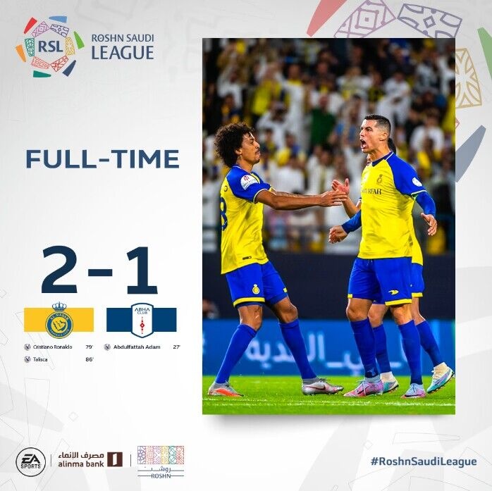 第84分钟,利雅得胜利获得点球机会!阿达姆禁区手球犯规被判点,C罗将点球让给塔利斯卡后者主罚点球破门,利雅得胜利2-1艾卜哈。↓