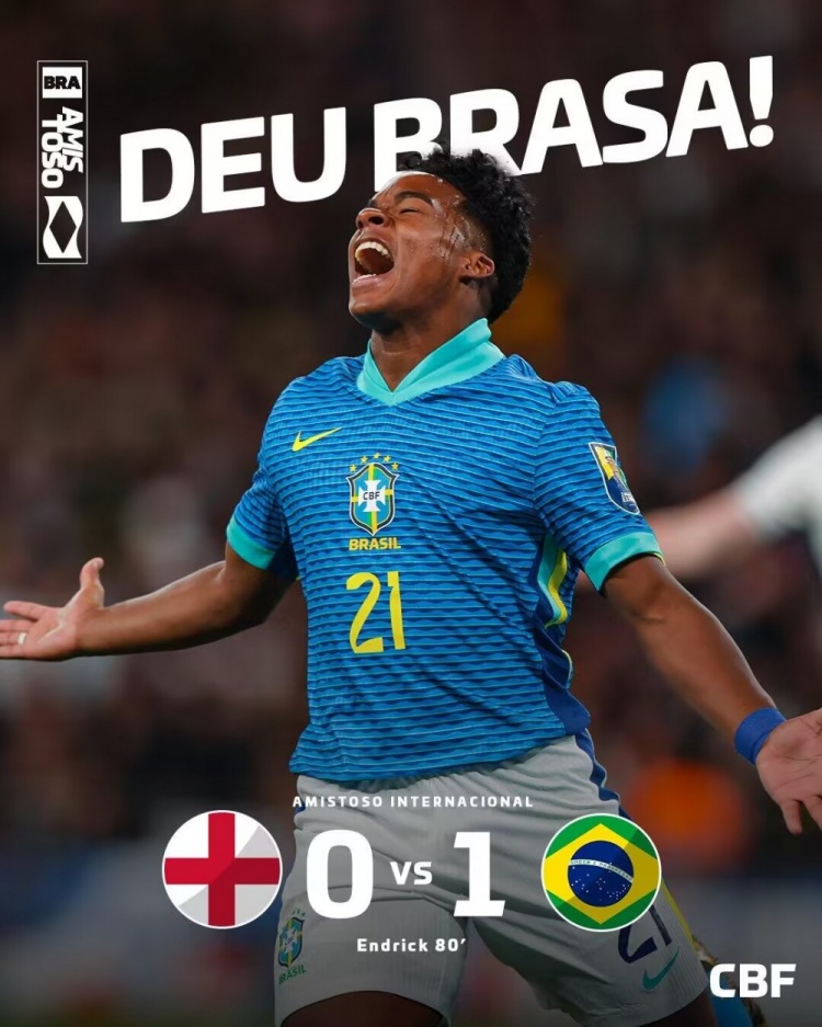 3月24日讯 足球友谊赛,英格兰主场迎战巴西。上半场,维尼修斯错失单刀机会,帕奎塔中柱,沃克伤退。易边再战,维尼修斯再次错失单刀,17岁恩德里克补射打进处子球制胜,最后阶段恩德里克也是错失大单刀机会。最终英格兰0-1巴西。