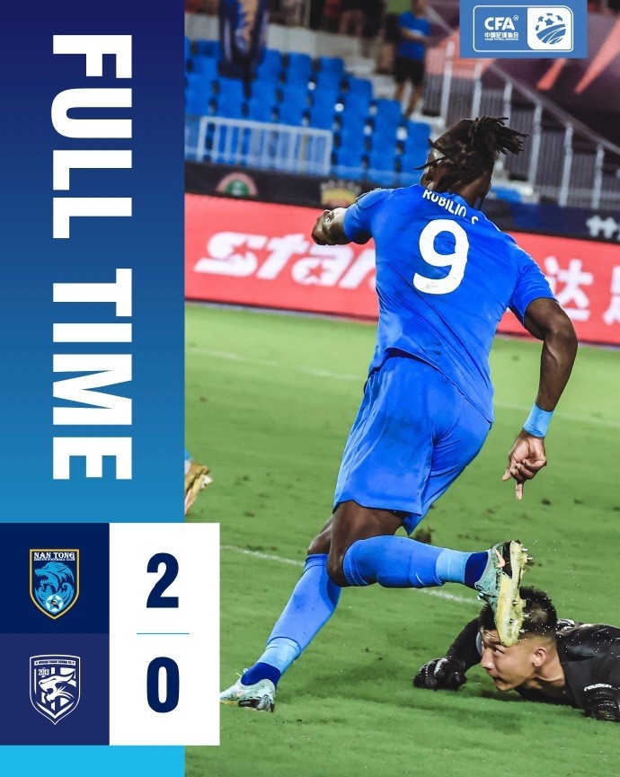 全场比赛结束,南通支云2-0武汉三镇。